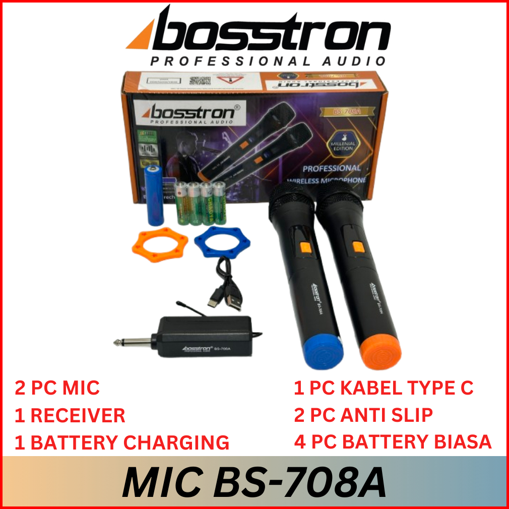 Bosstron Mic Microphone Wireless Karaoke Double Bs-708a