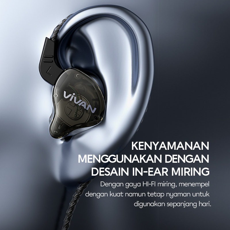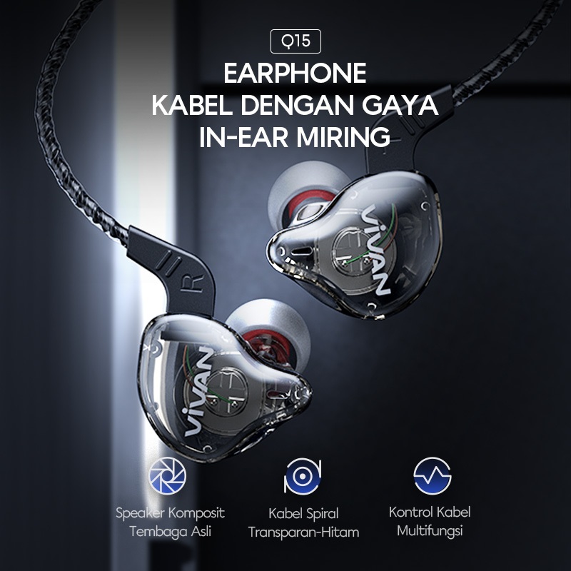 VIVAN Headset Earphone In Ear Kabel Stereo Powerfull Bass Wired Q15 Black Resmi 12 Bulan