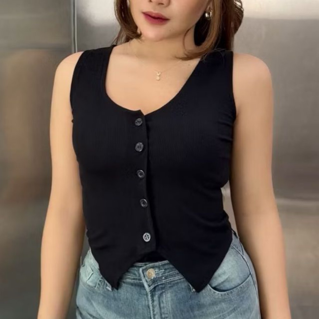 Ndshopp - Tanktop Wanita Crop Kancing Depan Atasan Tank top Casual Crop Top Stylish Basic Tanktop Bahan Ribbed Knit Rib