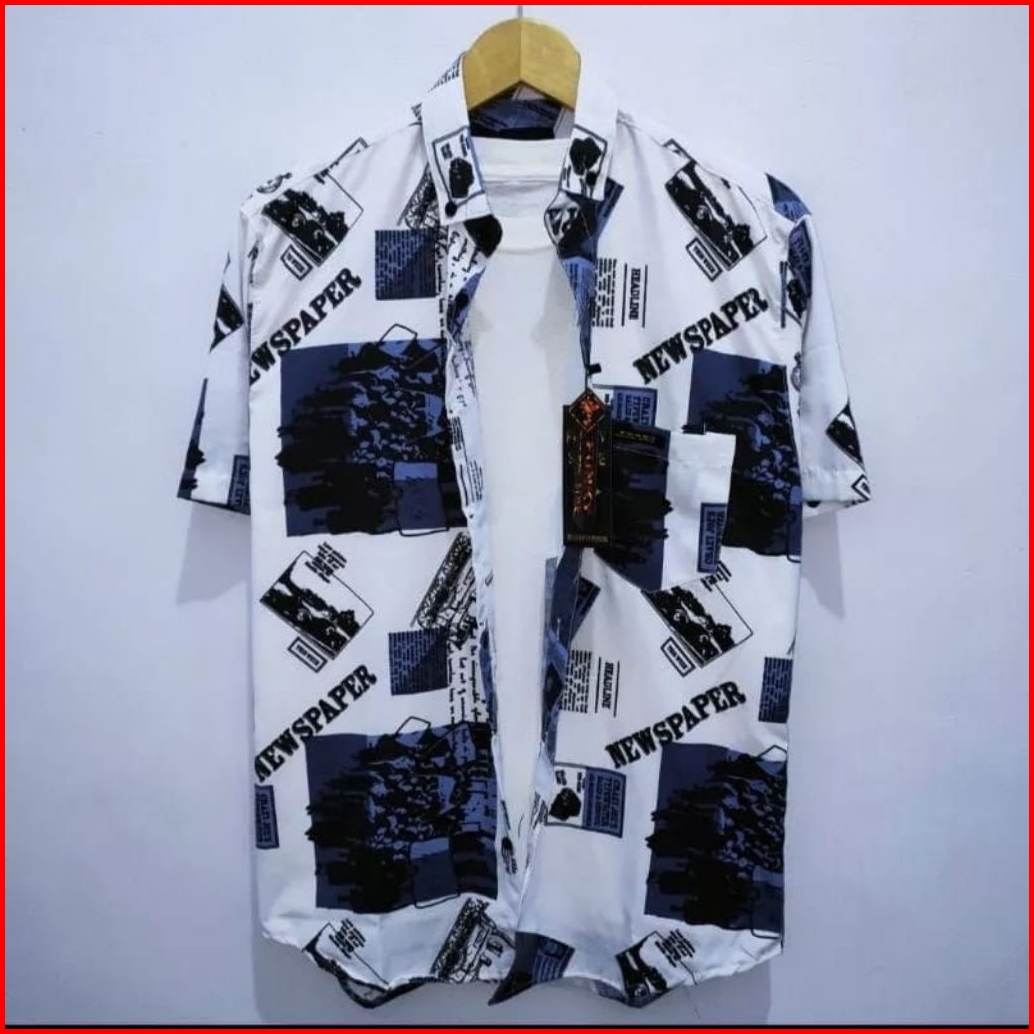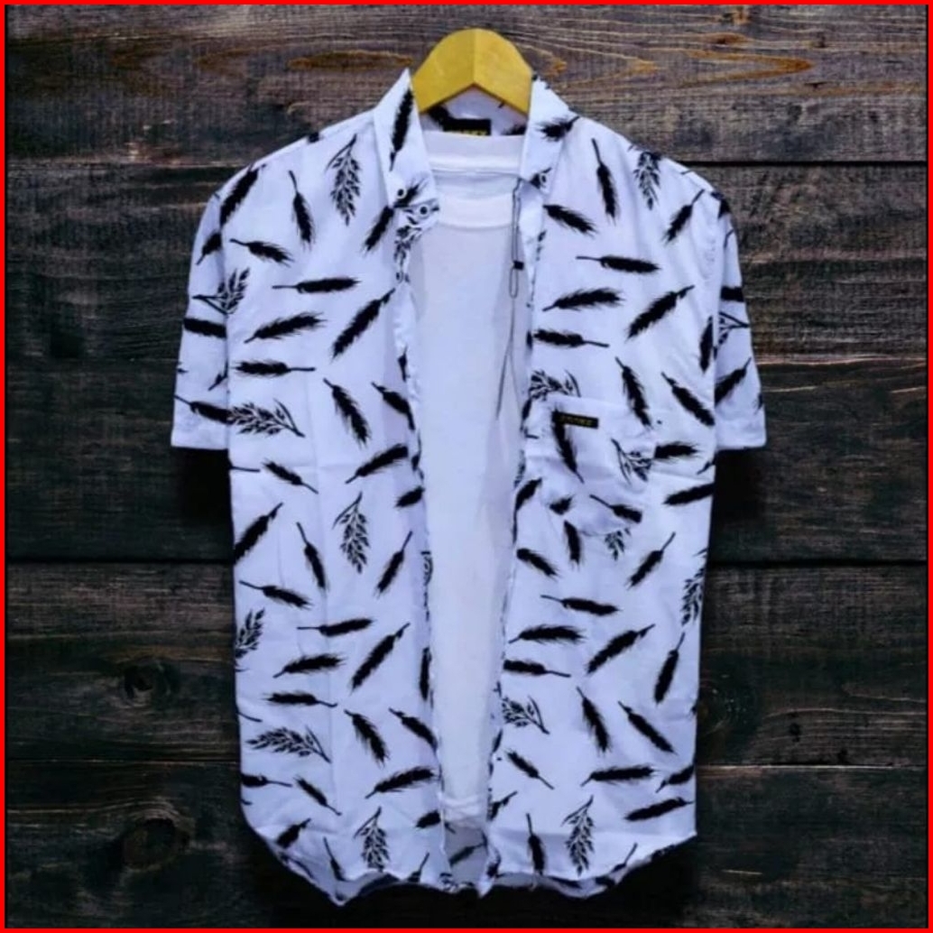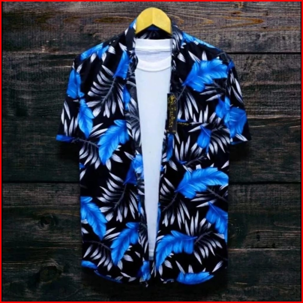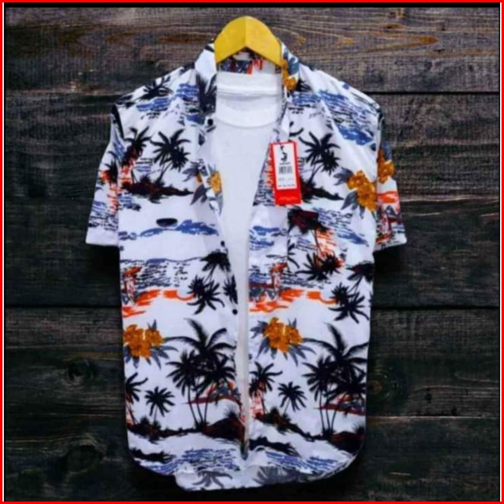 Kemeja Pantai Motif Hem Lengan Pendek Pria Dan Wanita