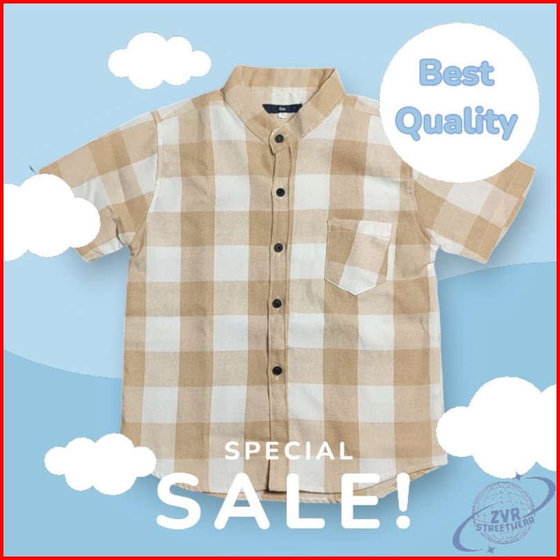 Zvr. Streetwear Kemeja Katun Flanel Lengan Pendek Anak Laki Laki Fashion Korean Kekinian Cowok Umur 1 2 3 4 5 6 7 8 9 10