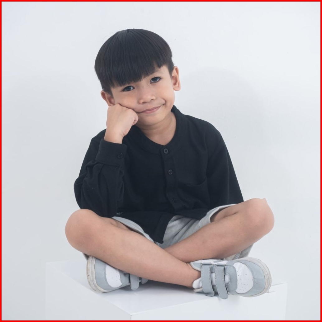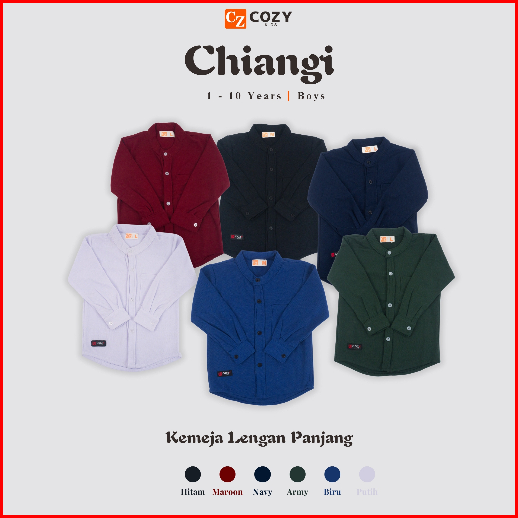 Cozy Kids Kemeja Anak Kerah Koko Chiangi Tangan Panjang Polos Usia 1-10 Tahun