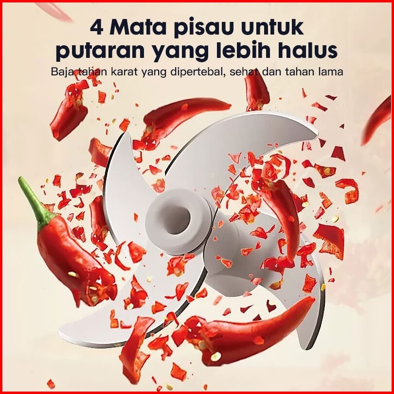 Bilikot Mini Chopper Elektrik Blender Portable 4 Pisau 300ml Food Grade Penghalus Bawang Multifungsi