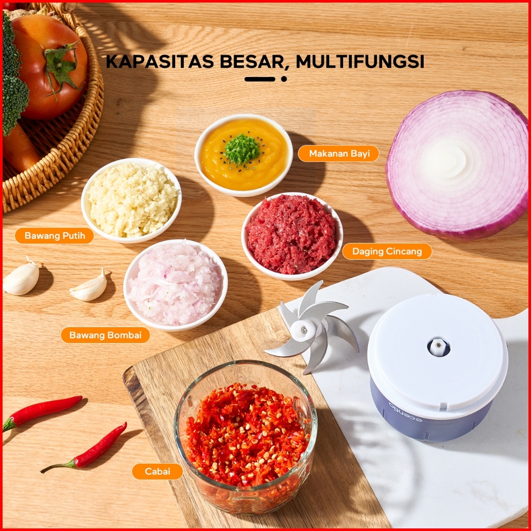 Ecentio Mini Chopper 6 Mata Pisau 250ml Portable Multifungsi Kaca Blender Kaca Tebal Gilingan Mini Bumbu Dan Daging