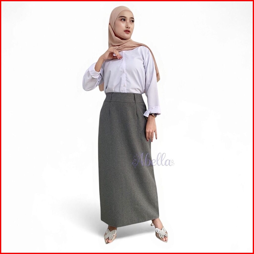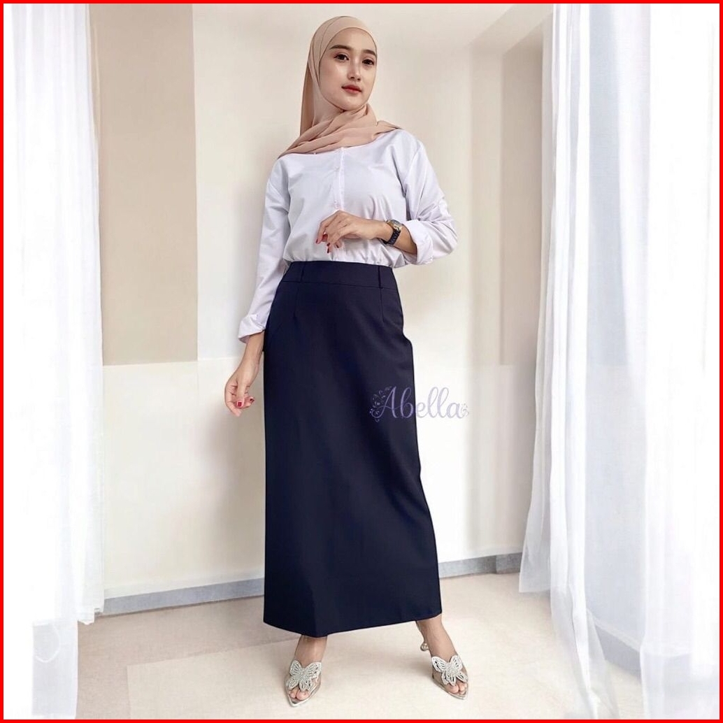 Rok Kerja Wanita Panjang Rok Span Rempel Belakang Size S - L5