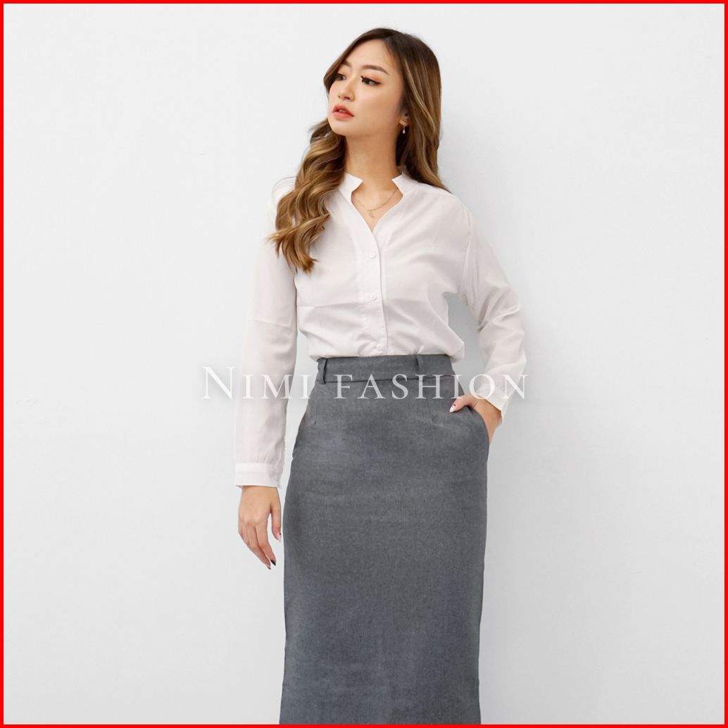 Nimi - Rok Span Belah Belakang Rok Kerja Wanita Panjang Rok Formal Kantor Wanita