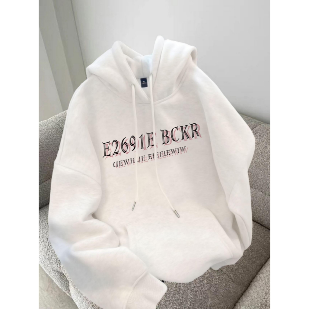 Forteid Oversize Hoodie Wanita Korean Style Oversize Hoodie Sweater (cetakan huruf kupu-kupu) Baju Wanita Kekinian/Baju