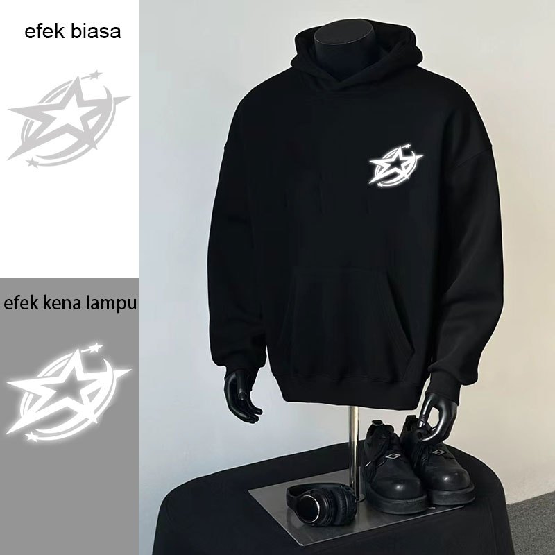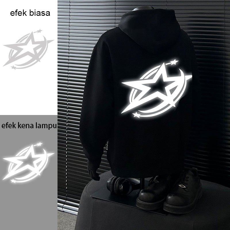CSND ICE Hoodie Reflektif Bercahaya Atasan Oversize Uni Hitam dan putih Dewasa Distro Keren Premium F004