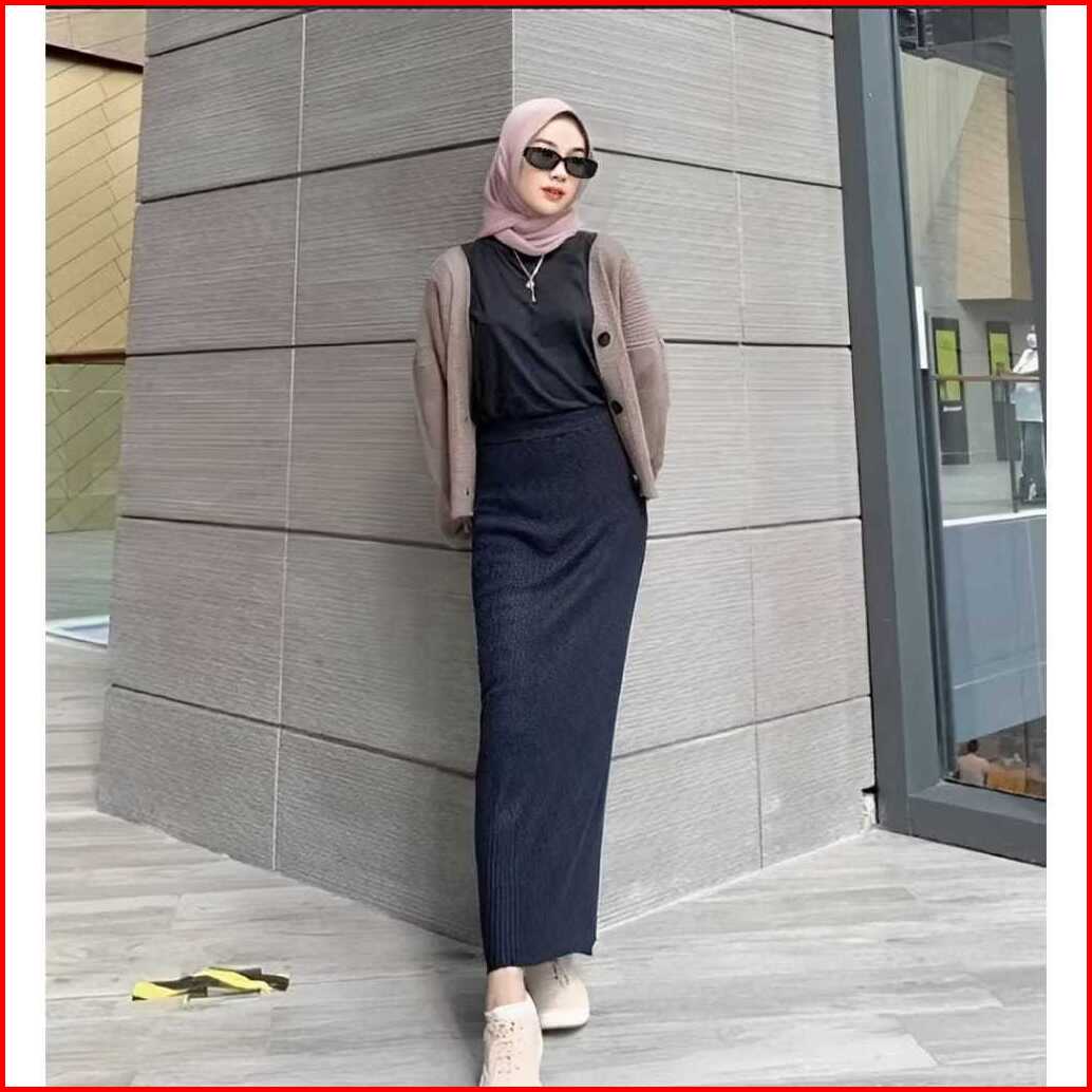 Terbaru Rok Span Maxi Rajut Premium Tebal Panjang Wanita Kerja Korean Style Jumbo