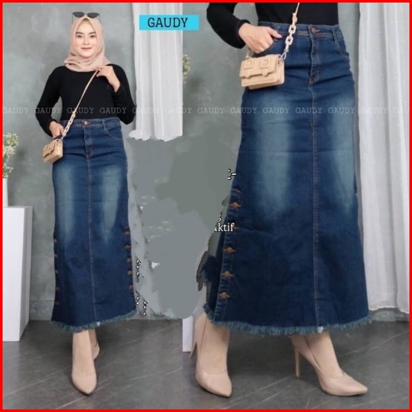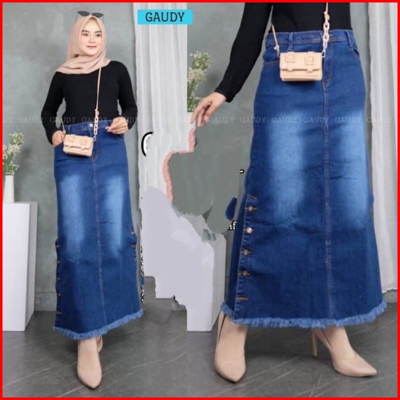 Rok Jeans Rawis Rok Span Kekinian Rok Denim Wanita Rok Jumbo