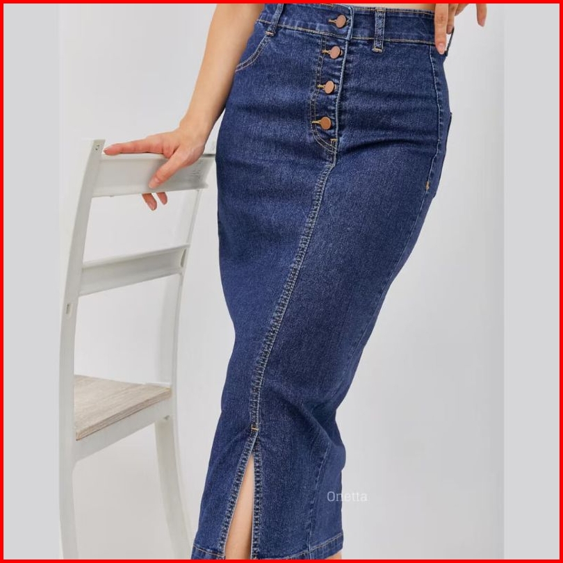 Rebecca Rok Sepan Kancing Depan Rok Jeans Wanita Kekinian