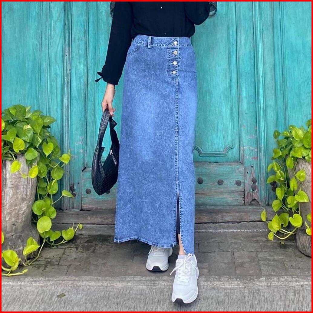 Rebecca Rok Jeans Wanita Kancing Belah Samping