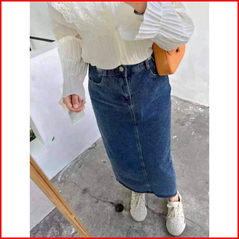 Rok Jeans Span Theana Highwaist Wanita Skirt Premium Polo