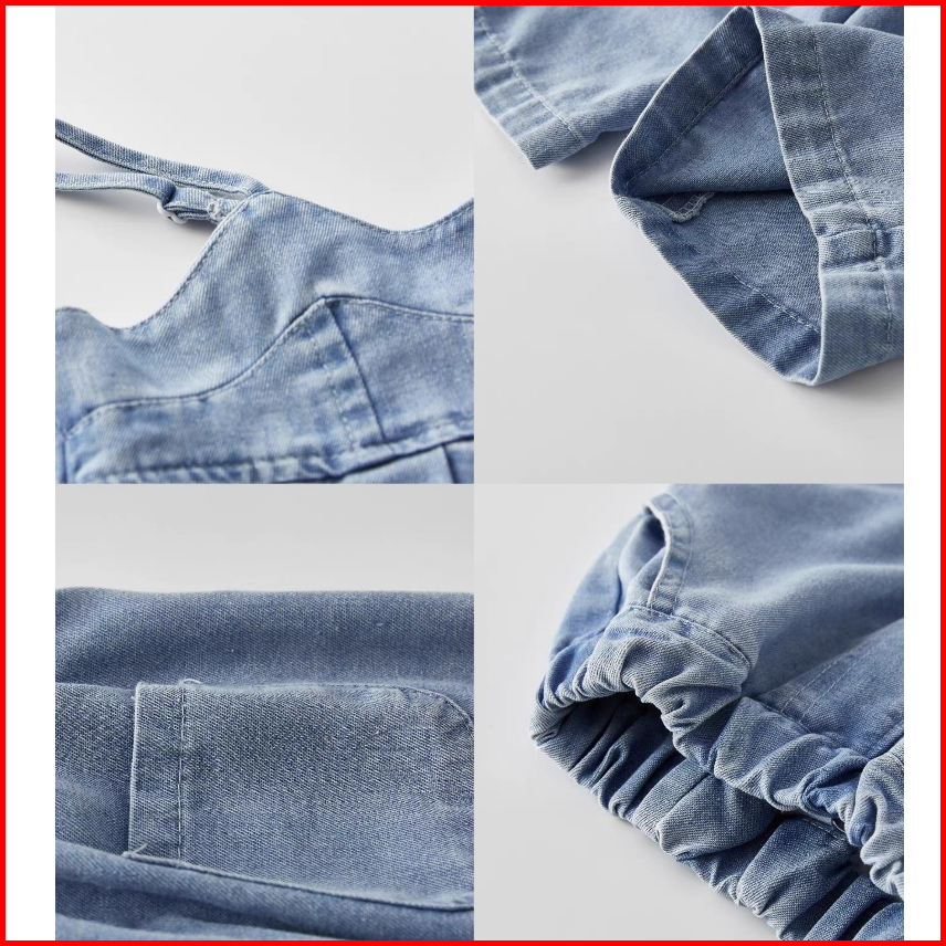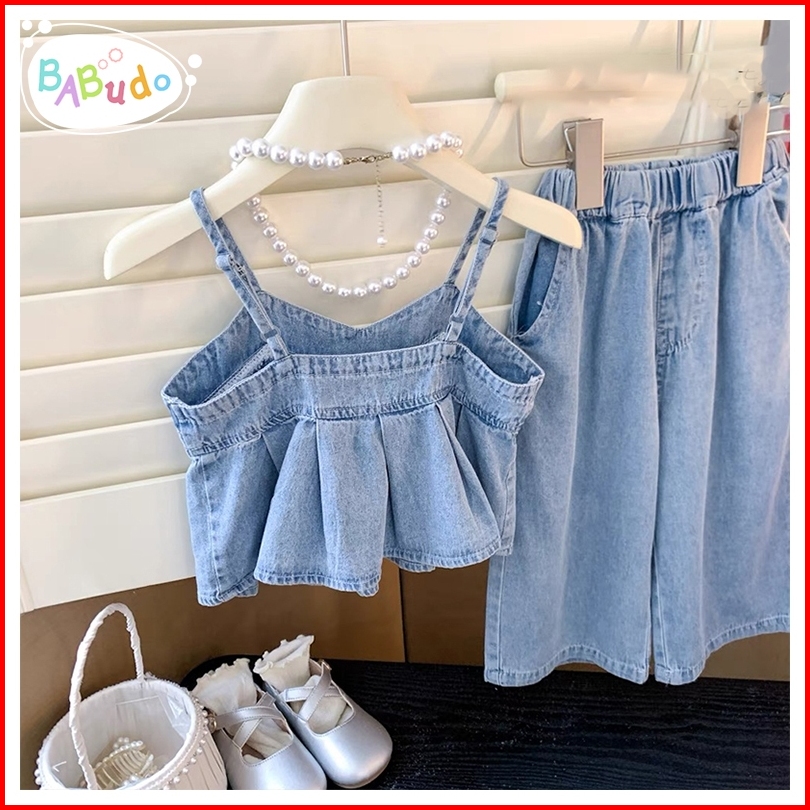 Setelan Denim Anak Perempuan Setelan Suspender Celana Panjang Tipis Korea Anak-anak Set 2 Potong