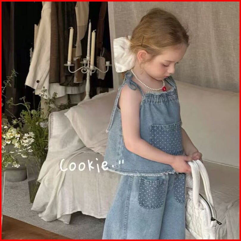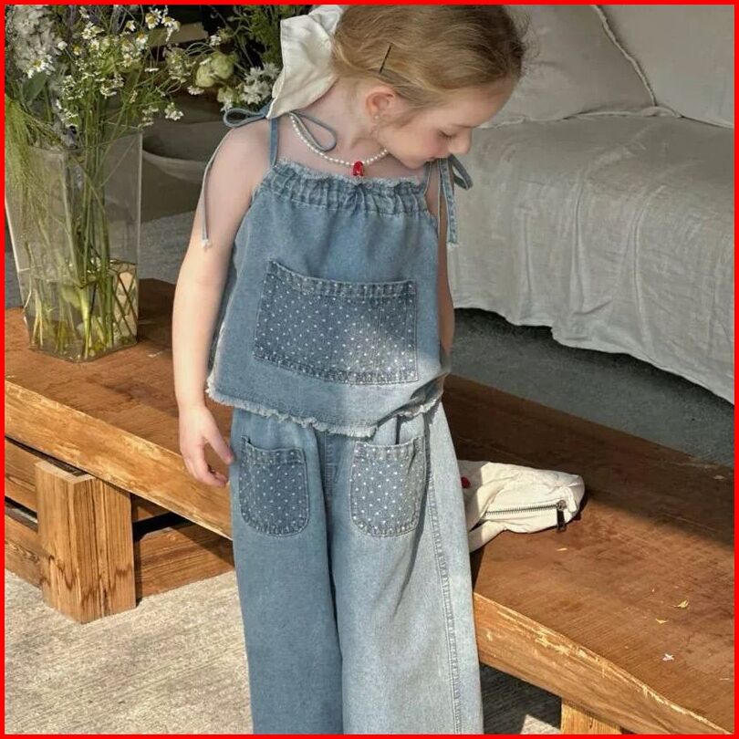 Setelan Jeans Anak Perempuan Atasan Jeans Tanpa Lengan Celana Jeans Panjang Setelan Anak Perempuan Manis