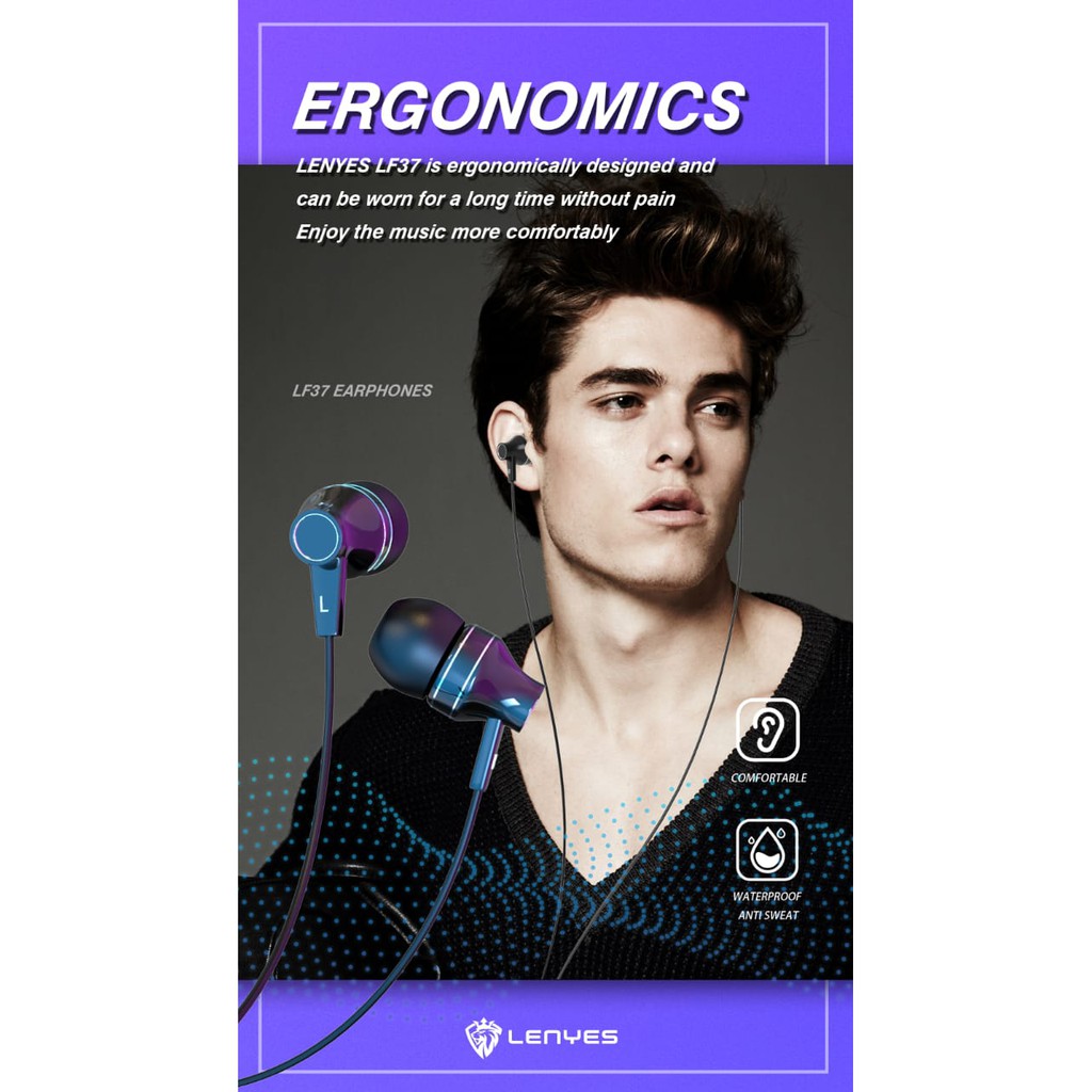 Lenyes headset LF37 in ear hifi stereo earphone extra bass with handfree microphone original 3 5mm