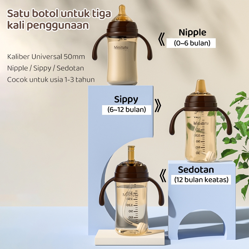 [Star] Minitutu Botol Susu Bayi (WIDE NECK) PP Nano Perak Botol Susu 3 IN 1 puting susu Gravity Ball Anti Kolik 240Ml/300Ml Bebas BPA