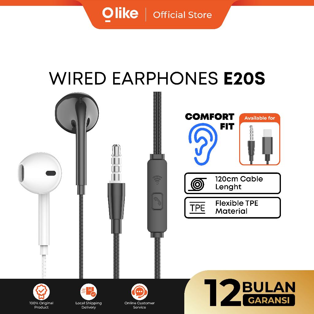 OLIKE HANDSFREE 3 5MM E20S WIRED EARPHONE MIC ANDROID IPHONE TABLET JACK HEADSET