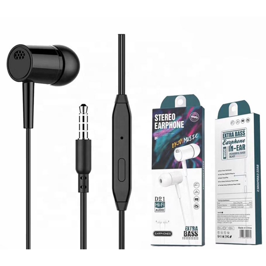 Headset D21 Wired Earphone With Box Handsfree Jack 3 5 MM HF Extra Bass
