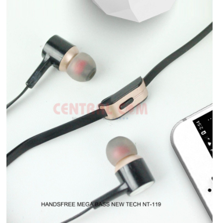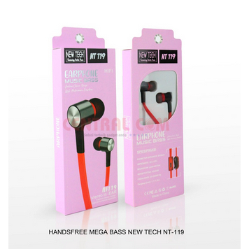 Handsfree Handphone Megabass Newtech NT 119 Heanset Hp Extra Bass Kabel Tebal Panjang 1 Meter