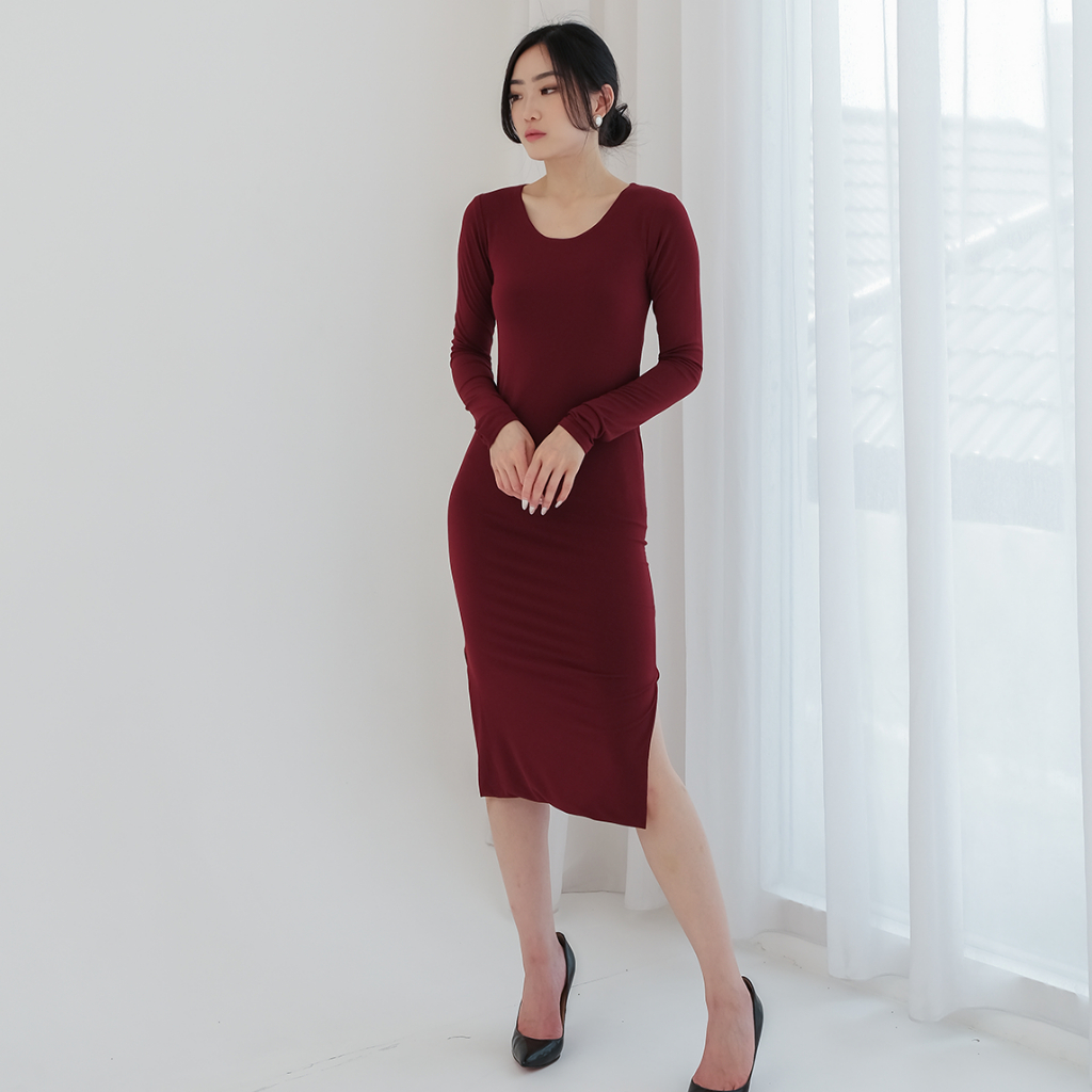 BODYSUIT Clara Midi Dress Spandek Bodycon Wanita