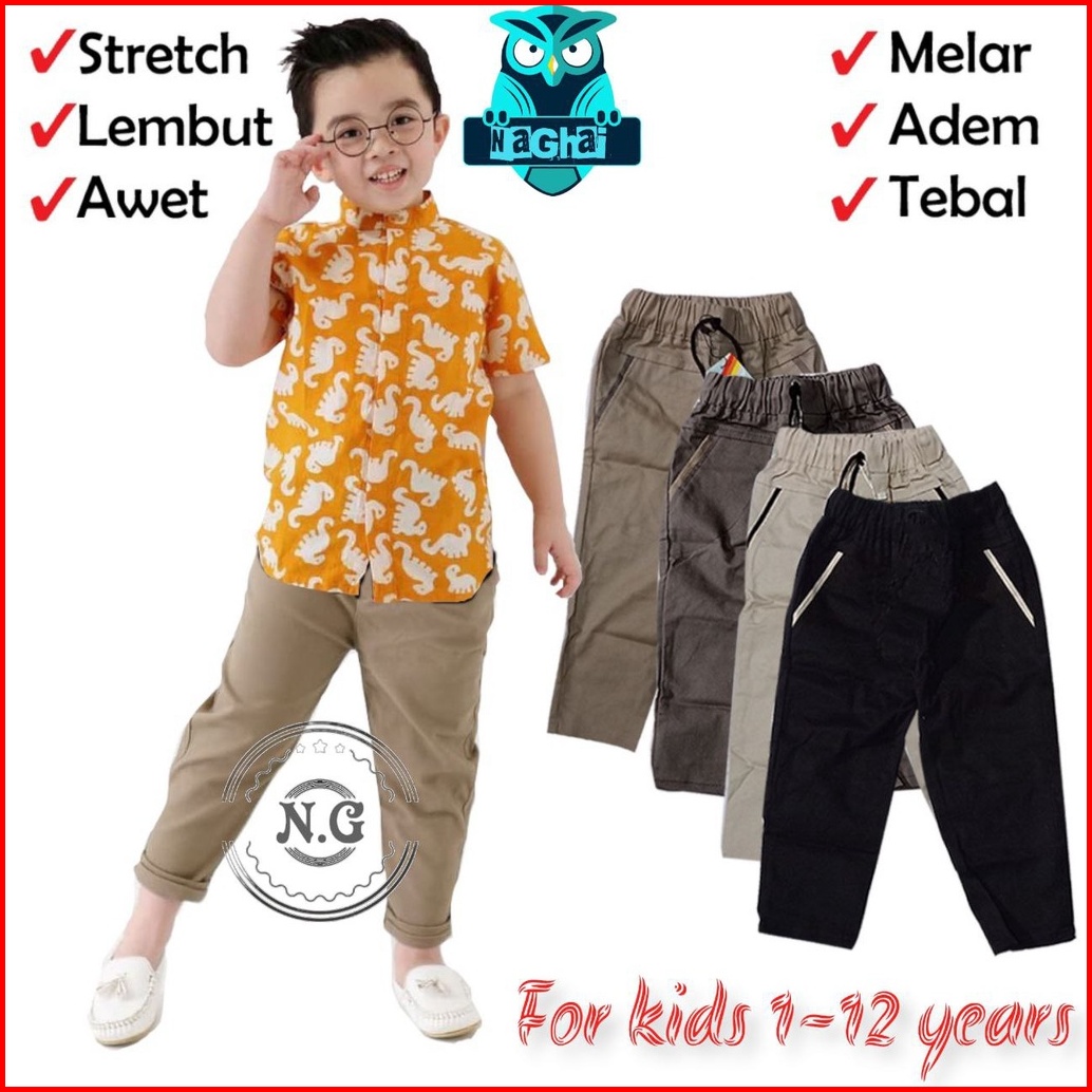 N.g- Celana Chino Anak Panjang 1-12 Tahun Bahan Stretch Melar Celana Panjang Chino Anak Cowok Cewek