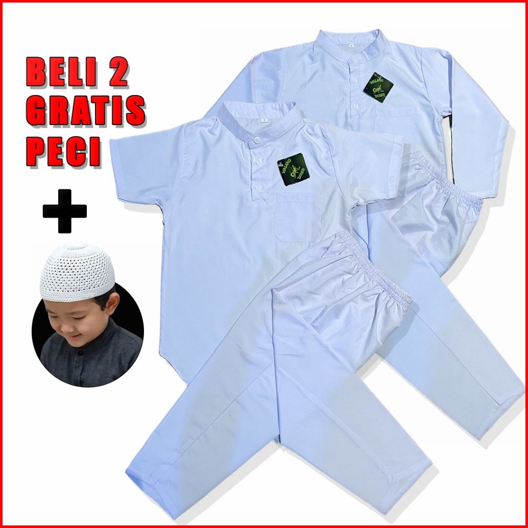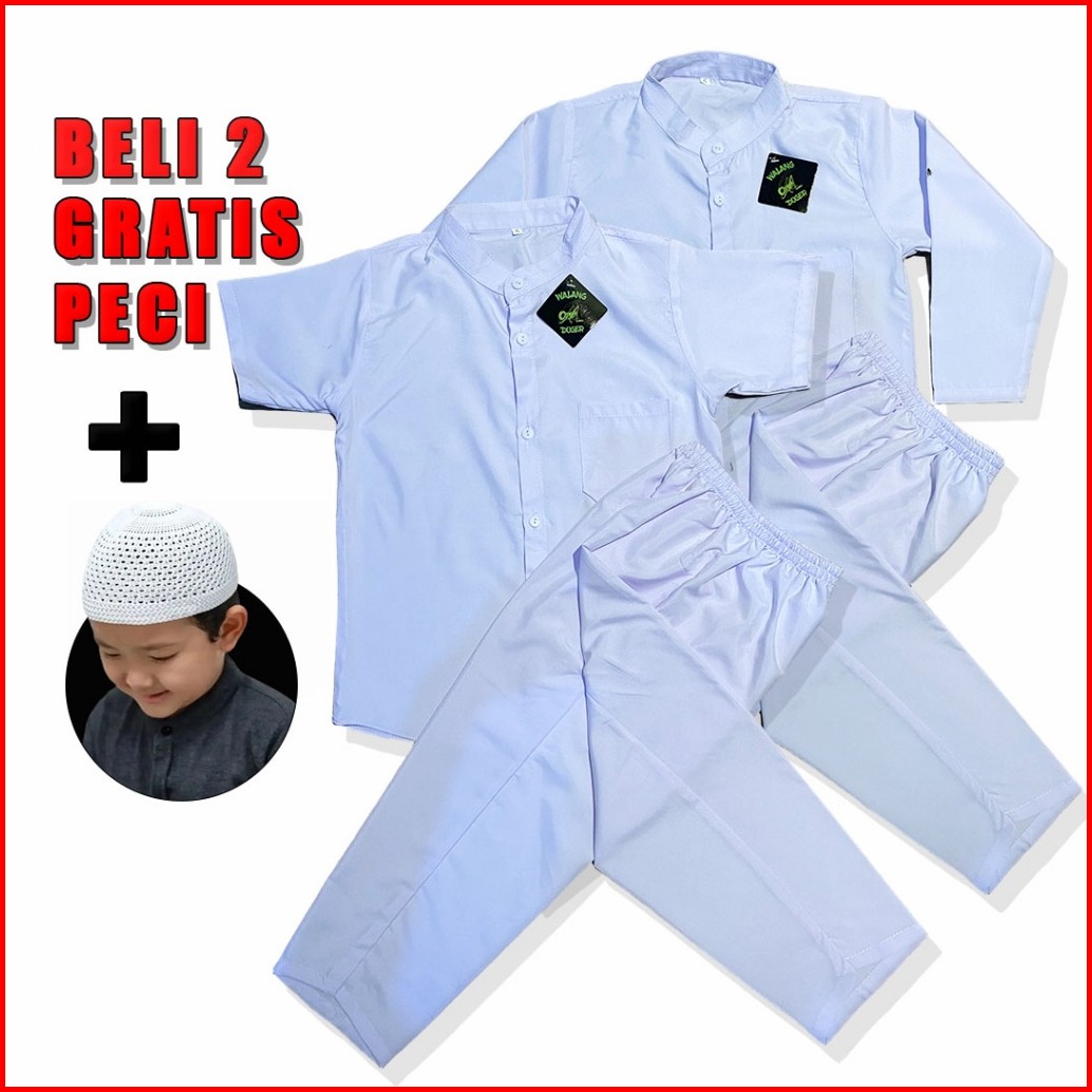 Baju Muslim Anak Setelan Manasik Haji Putih Kurta Lengan Panjang Dan Pendek Usia 1-13 Tahun