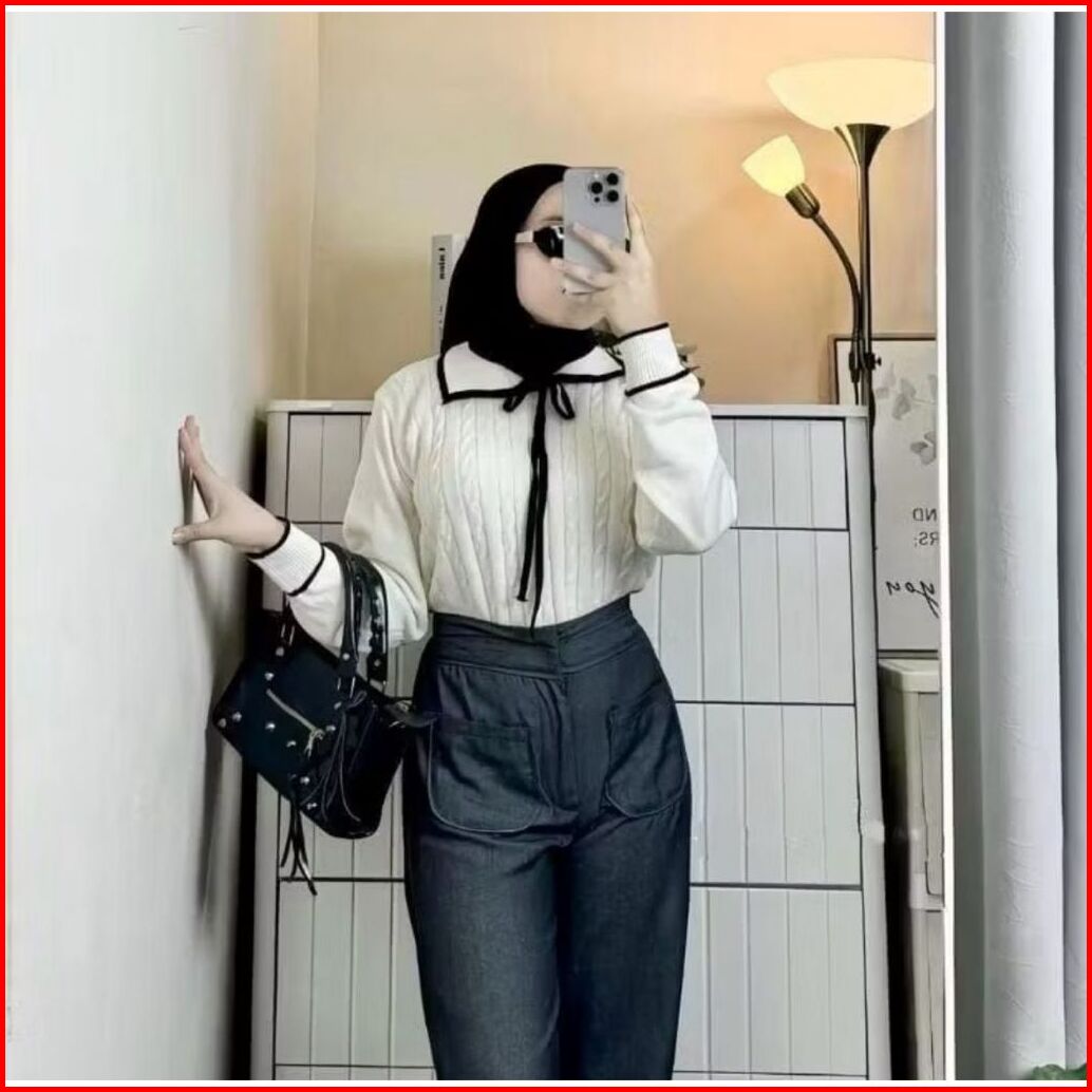 Kirana Blouse Rajut Cable Motif Pita Minimalis L-xl