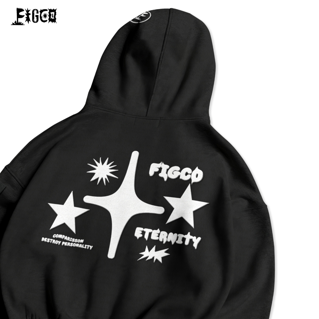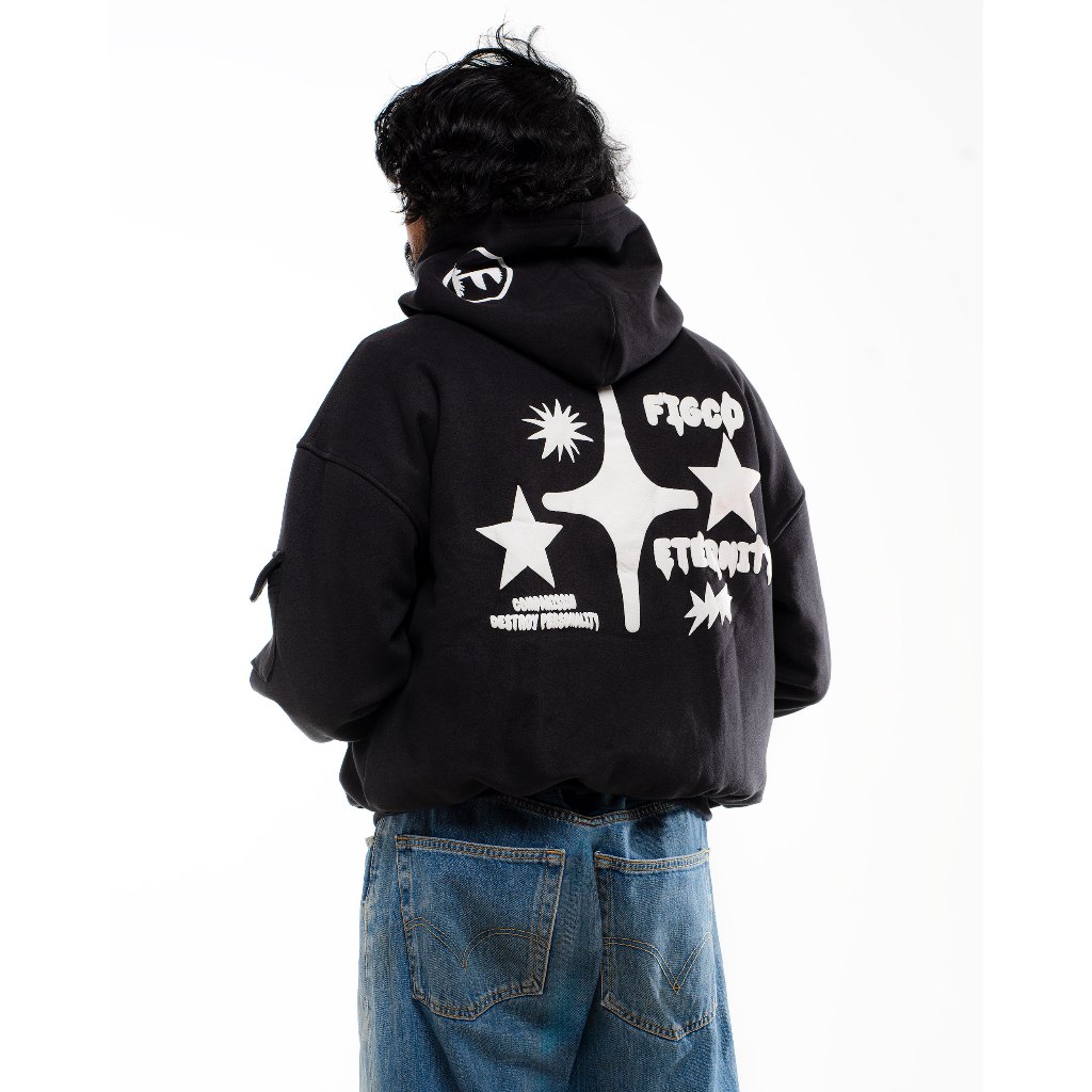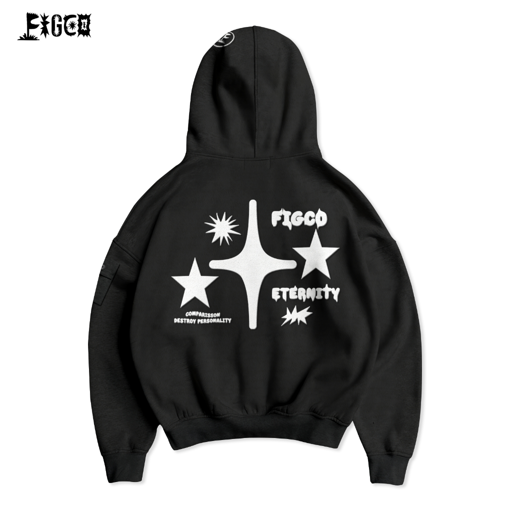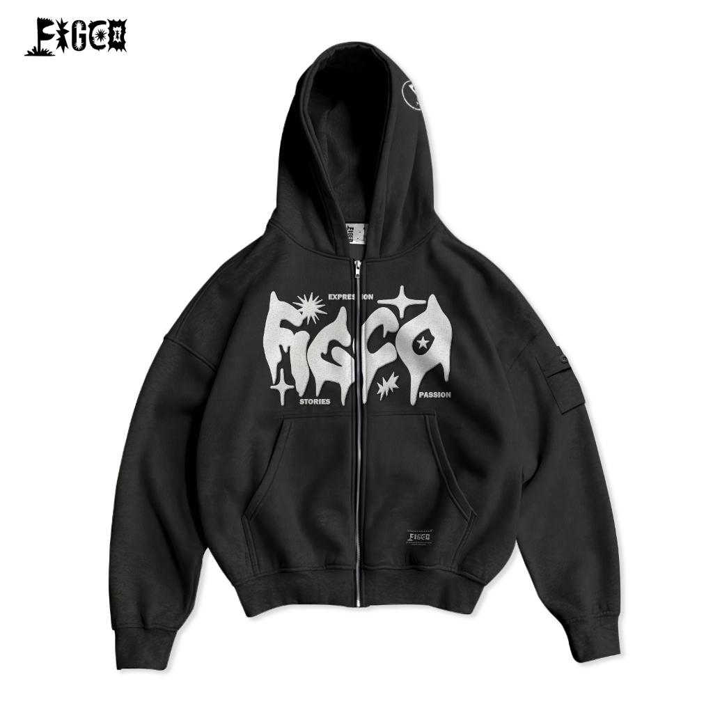 Figco - Hoodie Boxy Zipper Pocket Hitam Aura Black