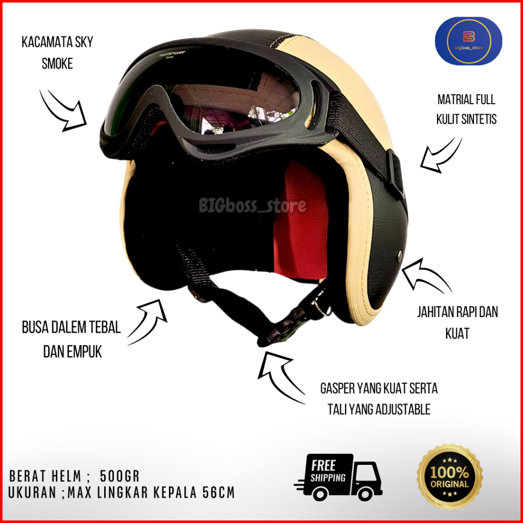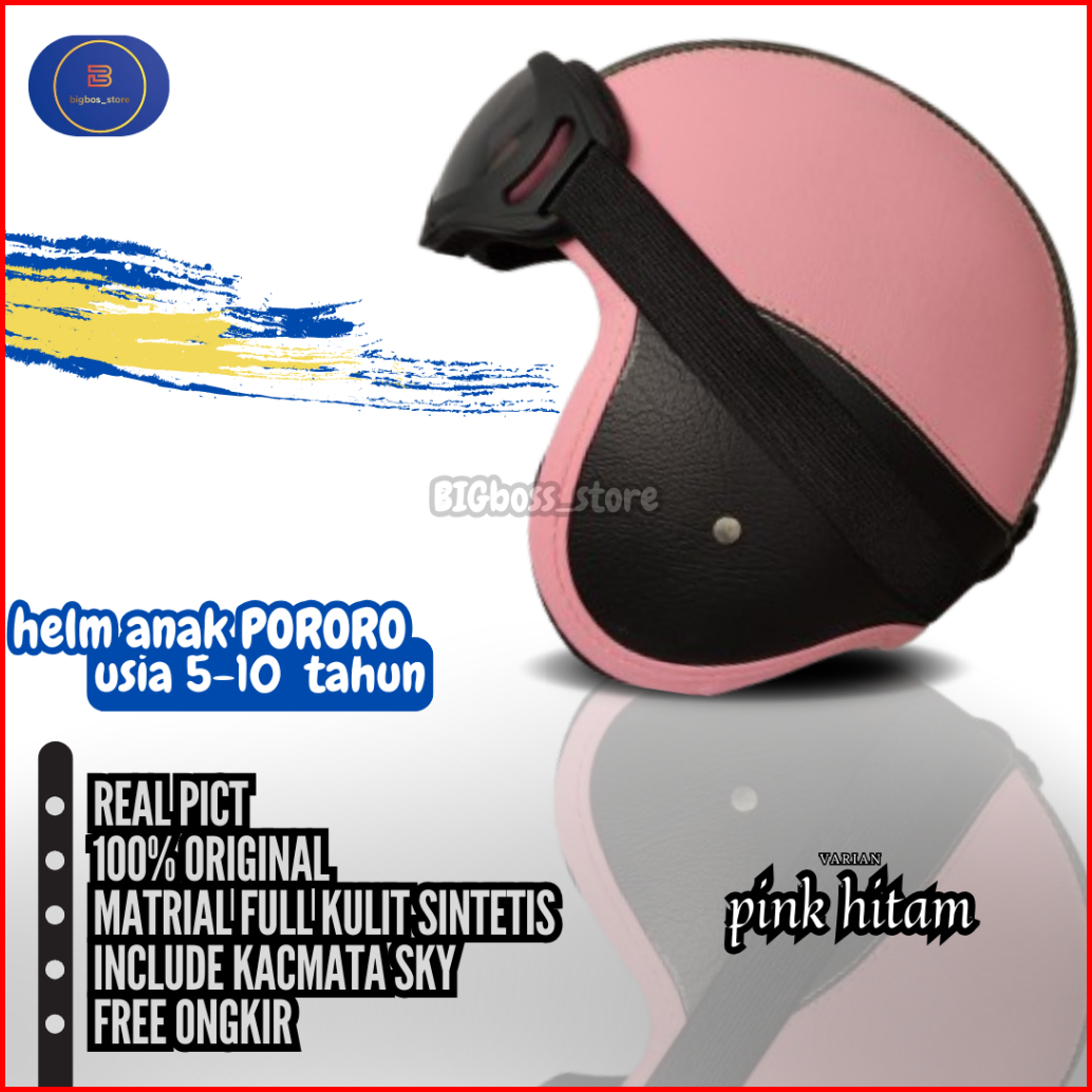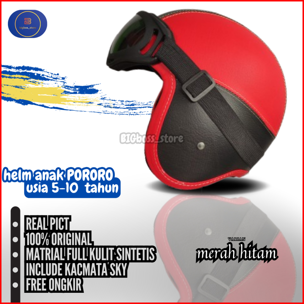 Helm Anak Pororo Retro Kekinian Usia 5-10 Tahun Full Kulit Sintetis Free Kacamata
