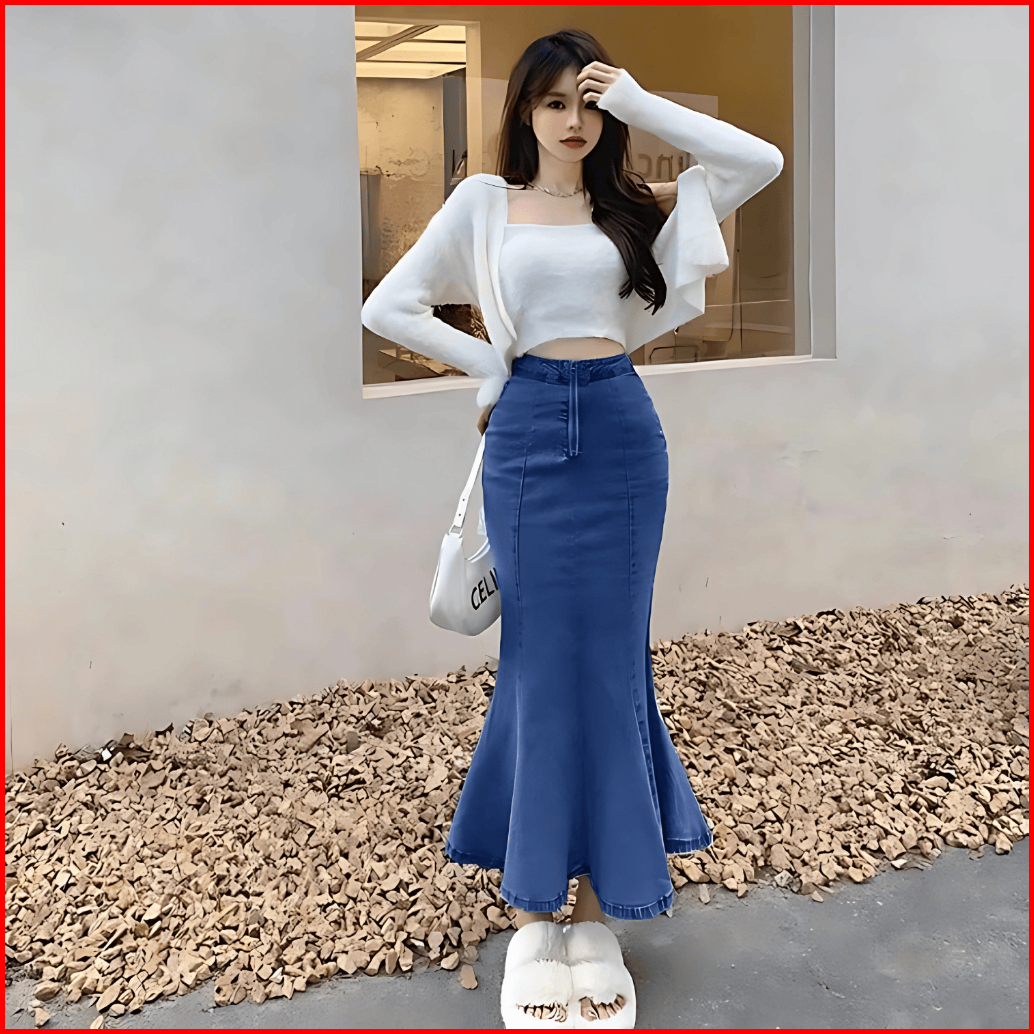 Rok Jeans Duyung Mermaid - Ready Stock Banyak Warna Dan Ukuran - Rok Jeans Wanita Remaja Dan Dewasa