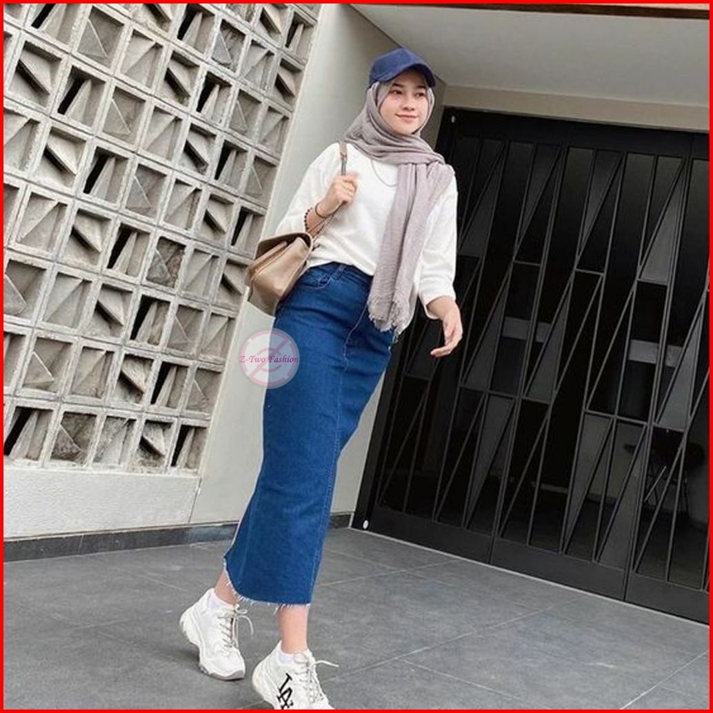 Rok Jeans Span 7 9 Unfinish Cutting Midi Korean Style Yuki 2024