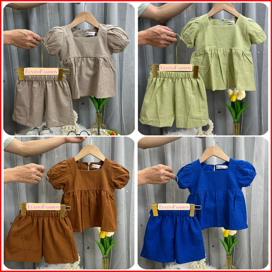 Eexito Setelan Peplum Anak Perempuan 1-5tahun Setelan Linen Anak Perempuan Dress Anak Cewek Fashion Anak Perempuan