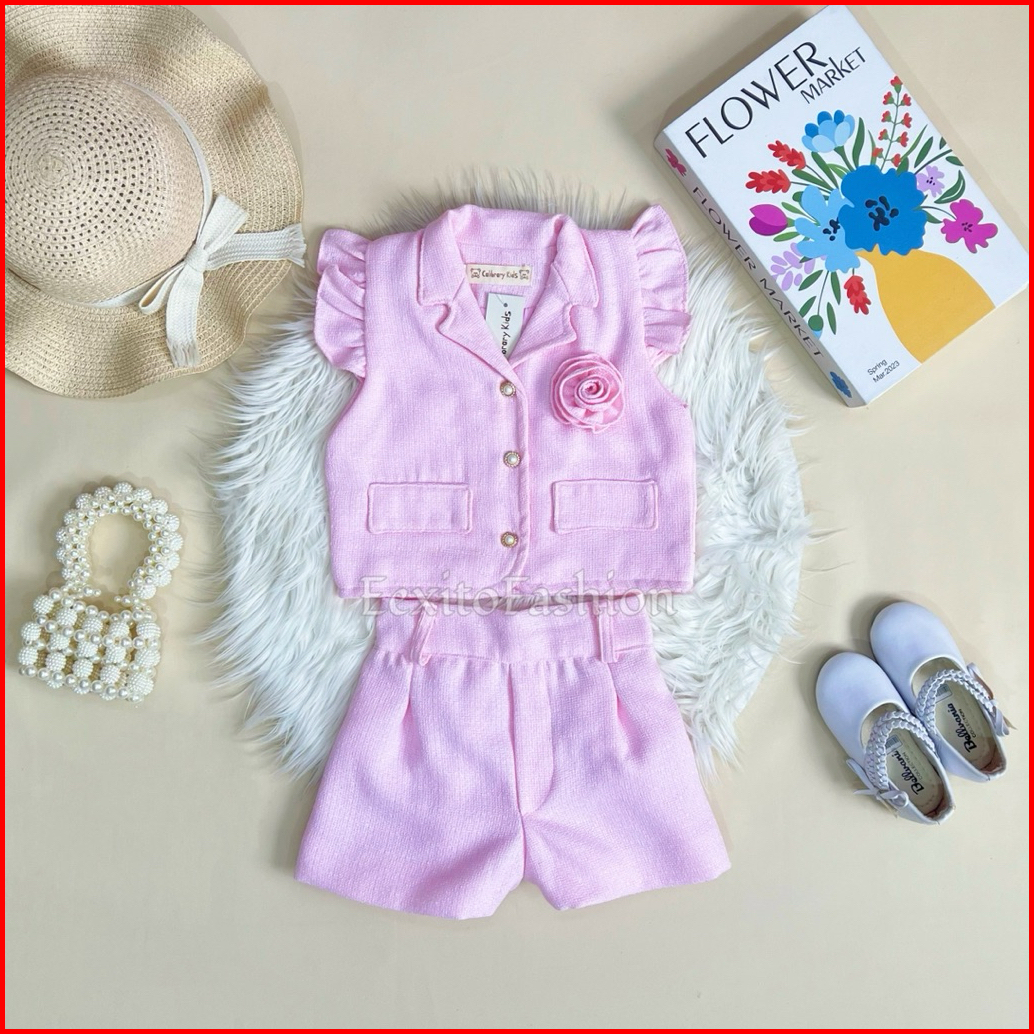 Eexitofashion Rosie Set Setelan Anak Balita Perempuan Bunga Mawar Fashion Outfit Anak Cewek Tweed Set
