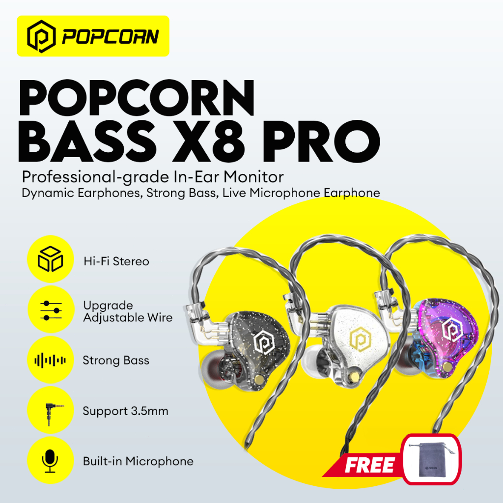 Popcorn Bass X9 Pro X8 Pro Dynamic Earphone HiFi Bass In Ear Monitor Earbuds Stream Earphones Removable Wired Headset w