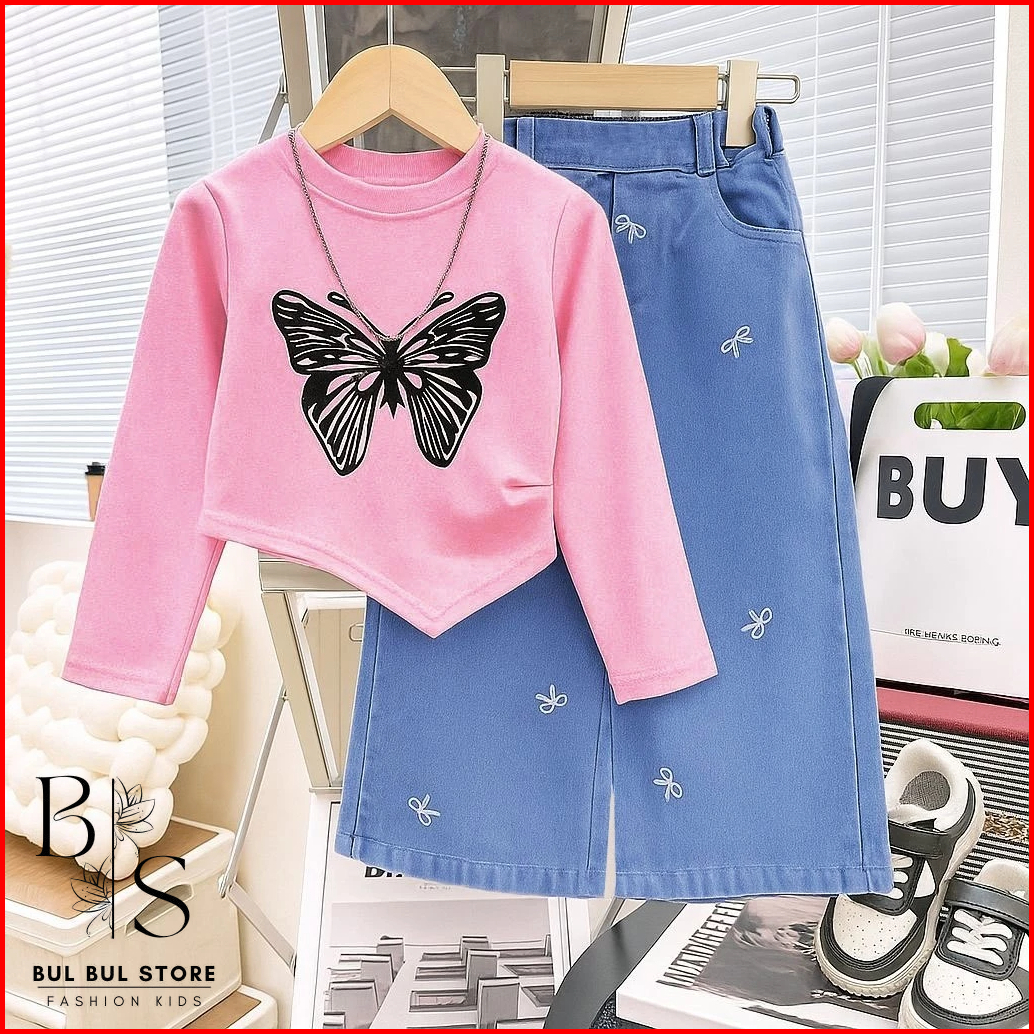 Setelan Anak Perempuan 1-5 Tahun Oneset Kaos Anak Crop Setelan Jeans Anak Baju Anak Cewek Kupukupu By.bulbulstore