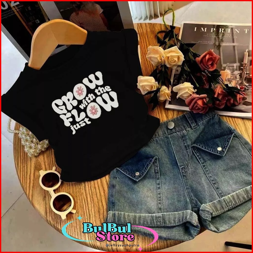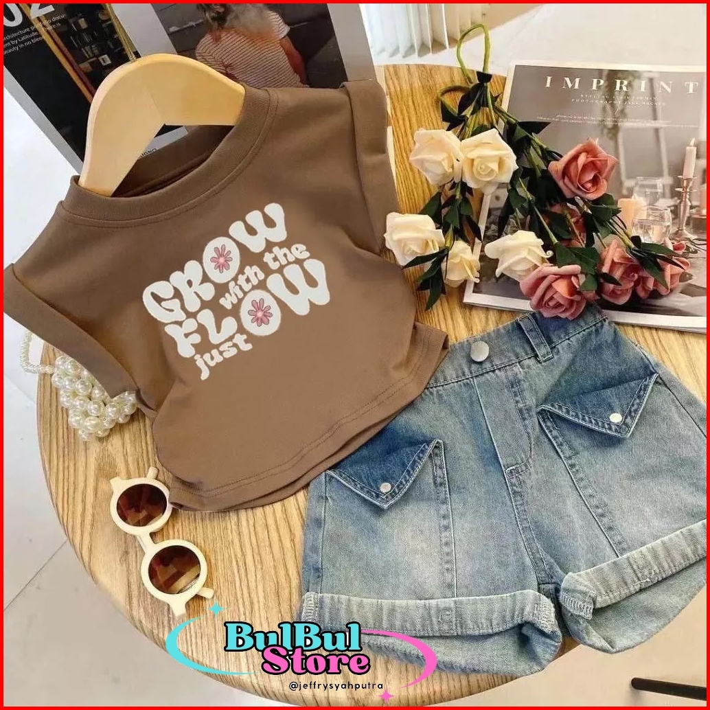 Setelan Anak Perempuan 1-5 Tahun Oneset Kaos Anak Cewek Setelan Denim Anak Grow By.bulbulstore