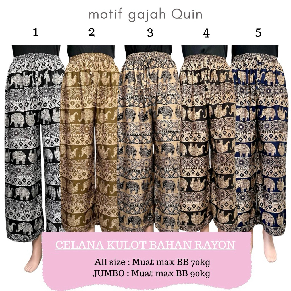 Celana Kulot Gajah Hommy Panjang Bahan Rayon Premium Motif Wanita