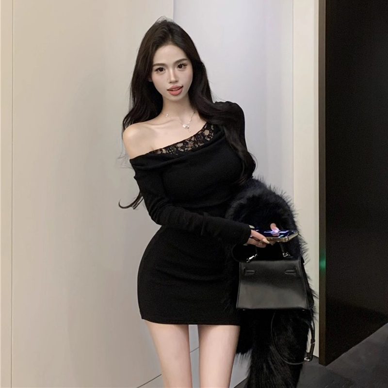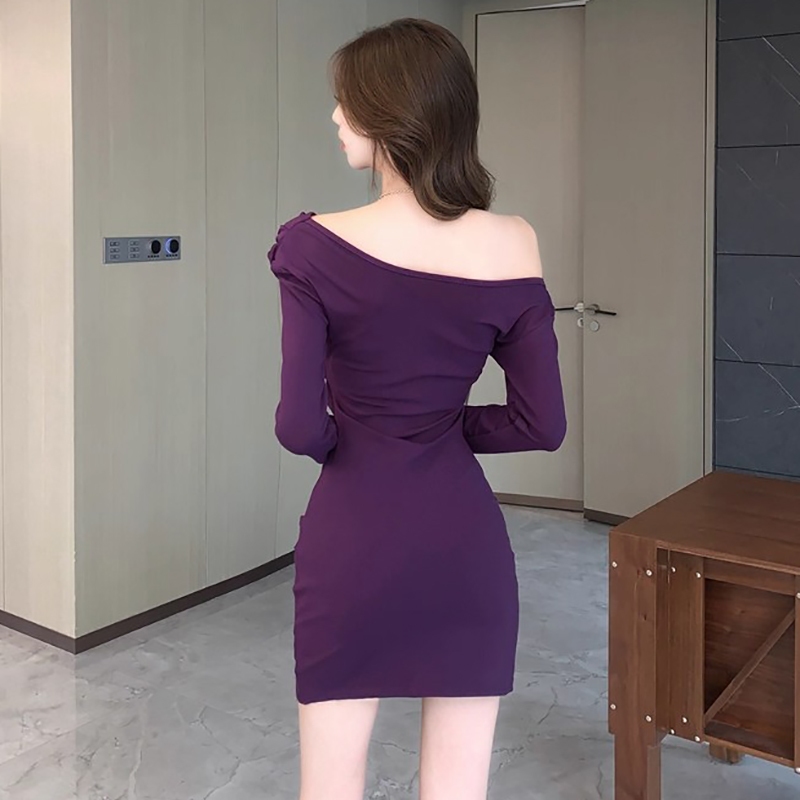 Newlan QZ252 Mini Dress y Lengan Panjang wanita Gaya Korea model Dress Pendek Dress Wanita Off Shoulder Long Sleeve A