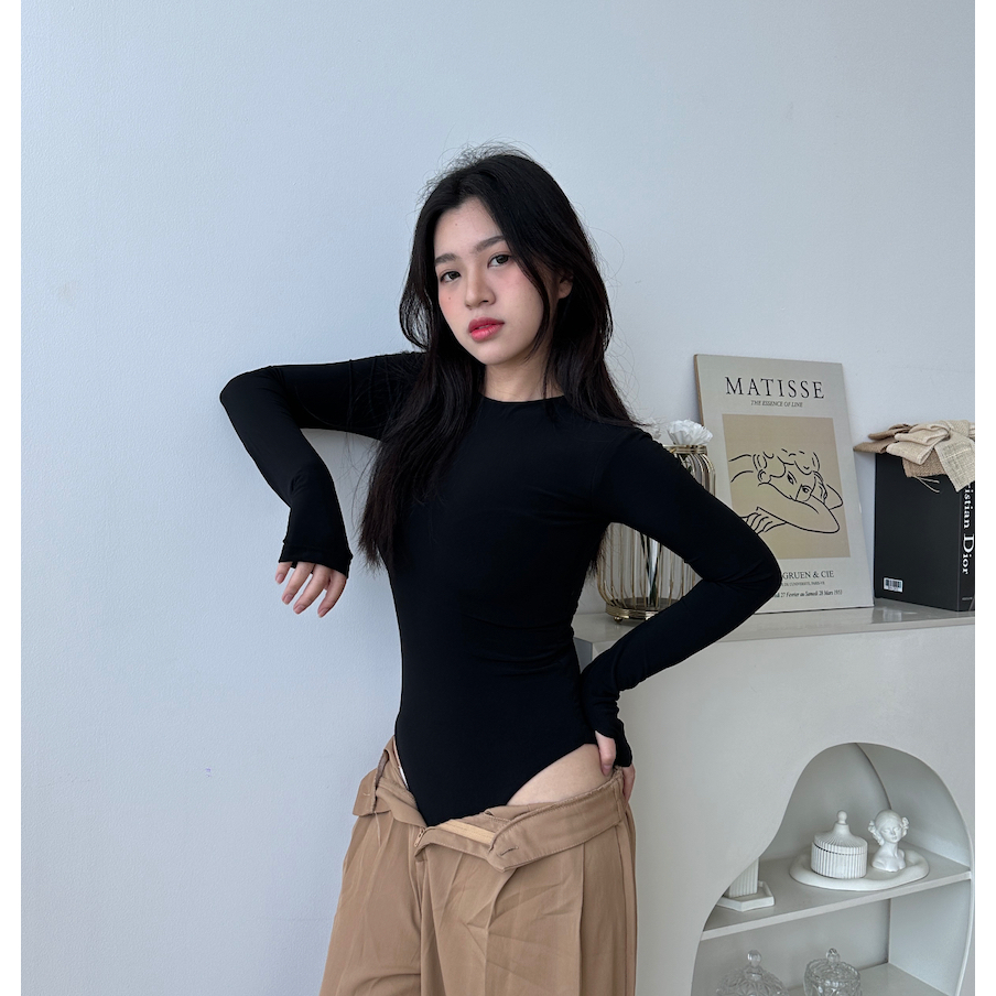 RIOD AOER - Ashley Bodysuit Wanita l Atasan Wanita l Bodysuit Basic Lengan Panjang l Leher Bulat Wanita l Hijab Friendly