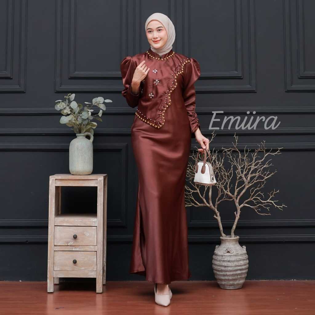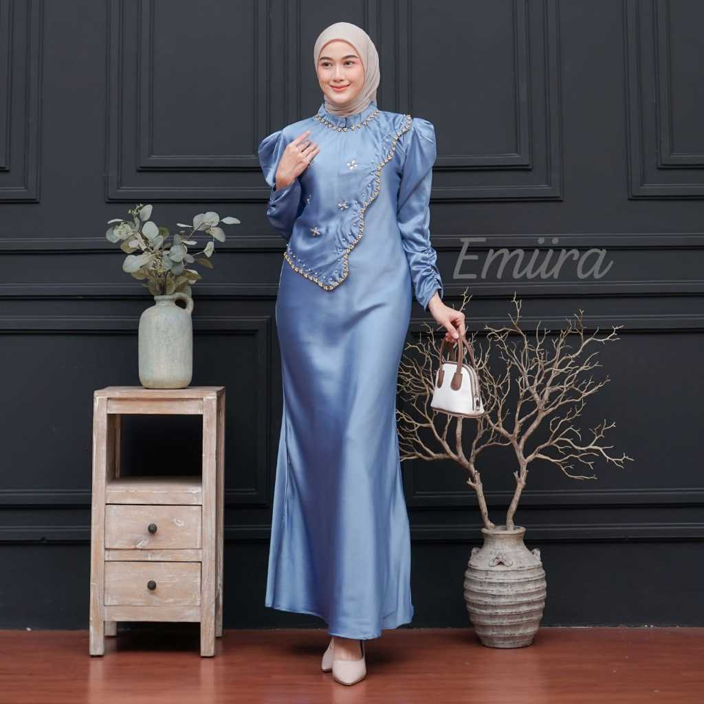 Amania Dress Gamis Baju Gaun Satin Silk Payet Duyung Bridesmaid Kondangan Wisuda Lamaran Pesta