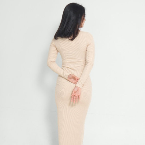 Nice Belle | Gianna Long Dress - Slim Fit Longdress Gaun Wanita Rib Knit Casual Basic Fitted Fit Body