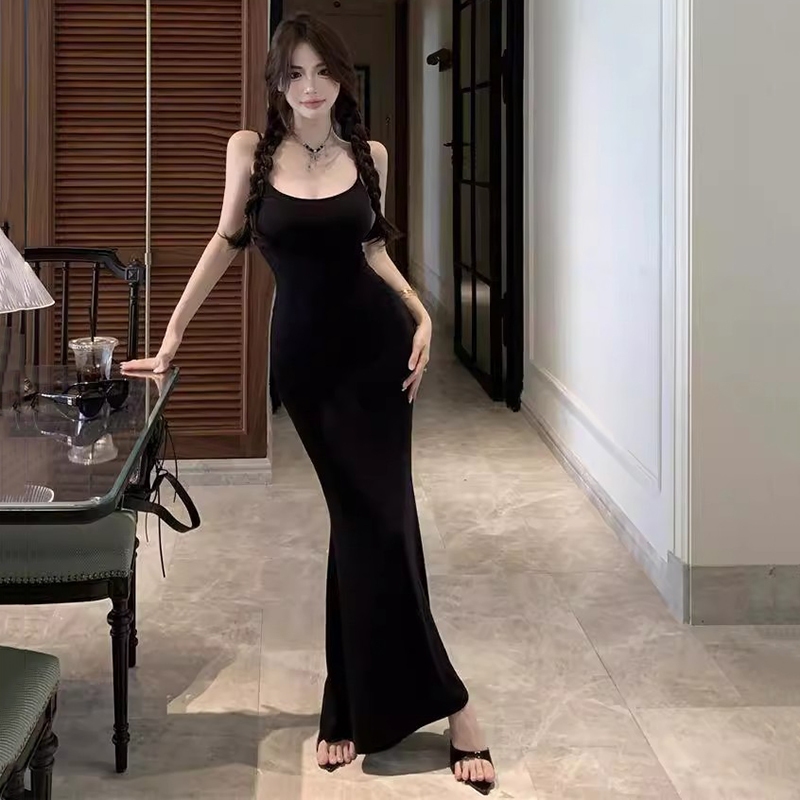 Newlan QZ236 Dress Tanktop Maxi Bodycon Tali Spageti Korean Party Style Longdress Panjang Dress Pantai Press Body Gaun D