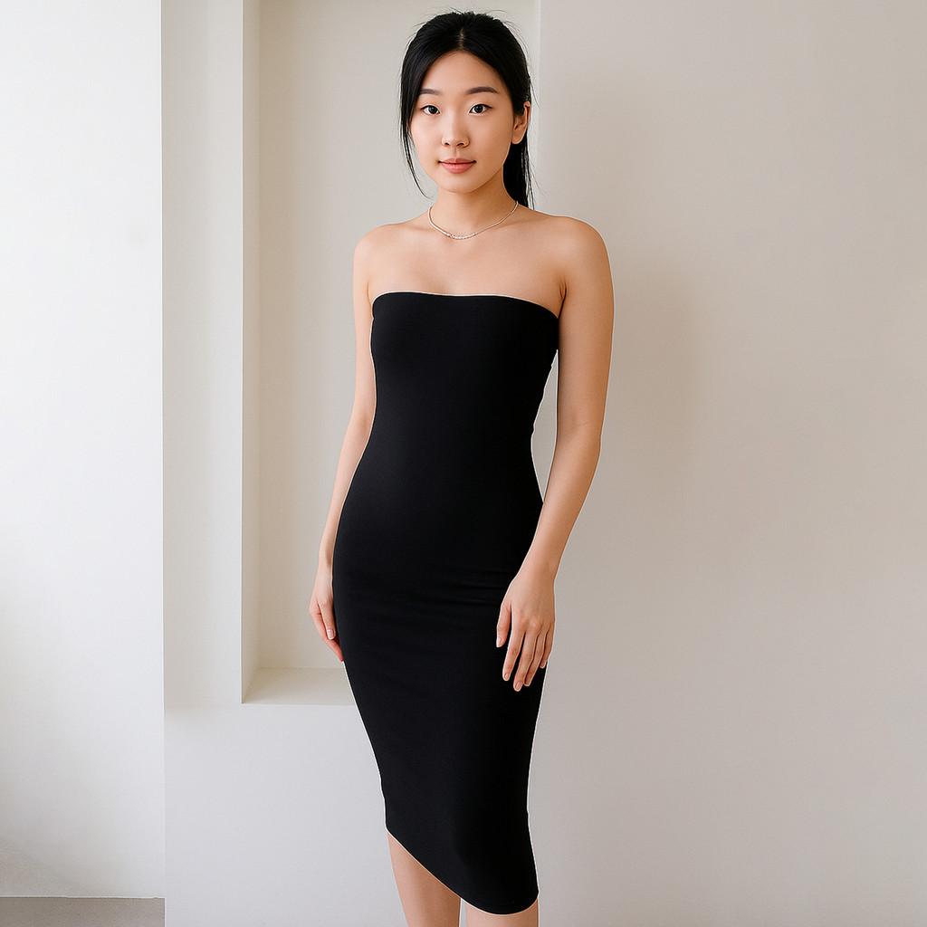 BODYCON Hoshira | Tube Dress Wanita Polos – Midi Dress Stretch Body Hugging | Ukuran S - XXL