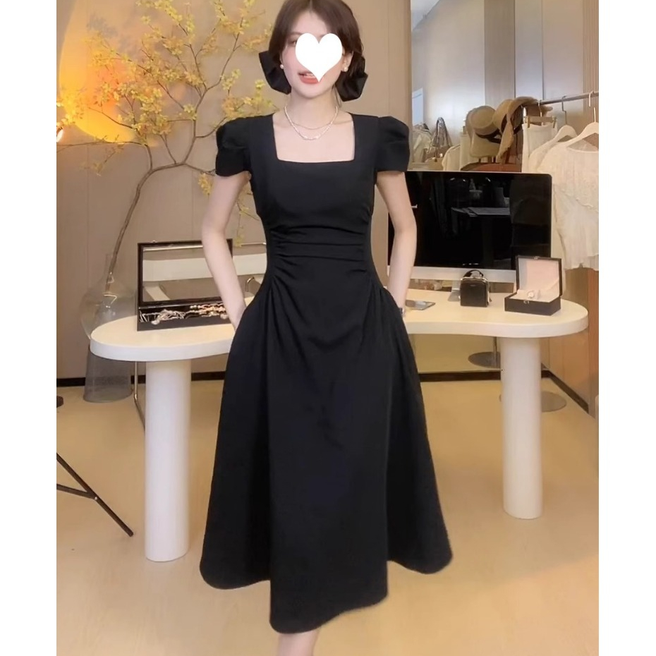 MISS EMITA Baju Elegant Party Black Dress Bodycon Midi Hitam Lengan Pendek Wanita Korean Style Dress Terbaru 2025 Import