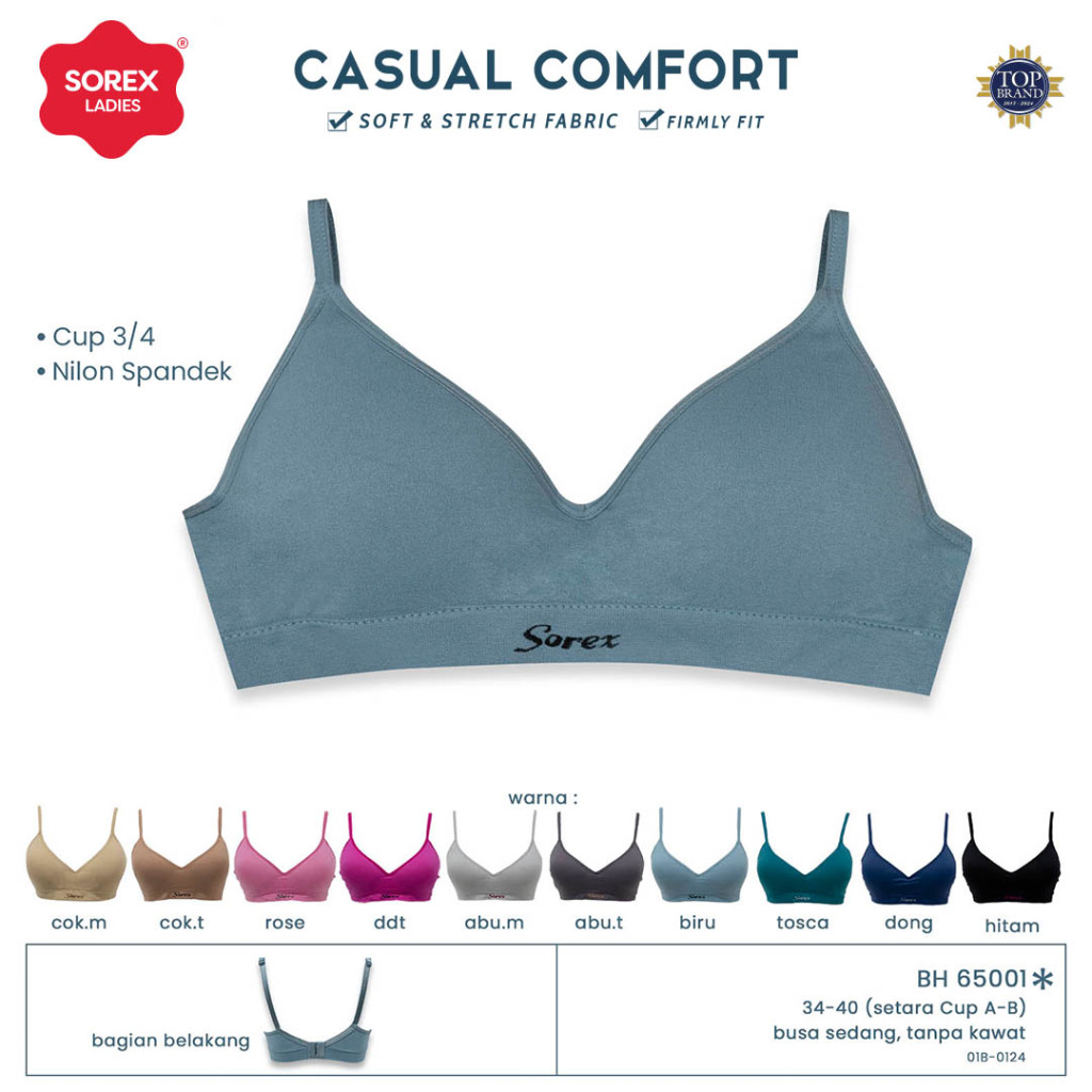 Sorex Bra Tanpa Kawat Busa Kait 2 Setara Cup B Bra Harian Casual Comfort BH 65001