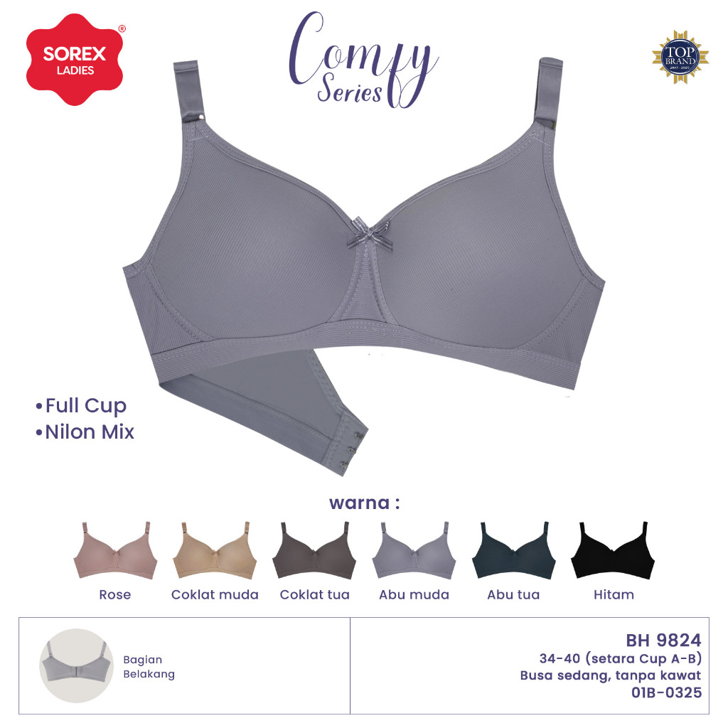 Sorex Bra Tanpa Kawat Busa Kait 3 Cup A-B Full Cup Nilon Mix Comfy Series Bra Harian BH 9824