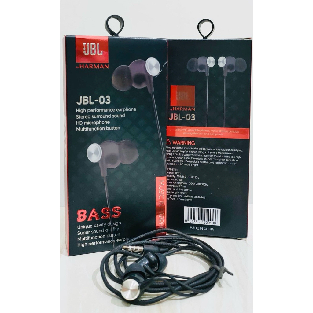 Earphone Handsfree Headset JBL 03 Extra Bass HF Universal + Mic Jack 3 5mm JBL03