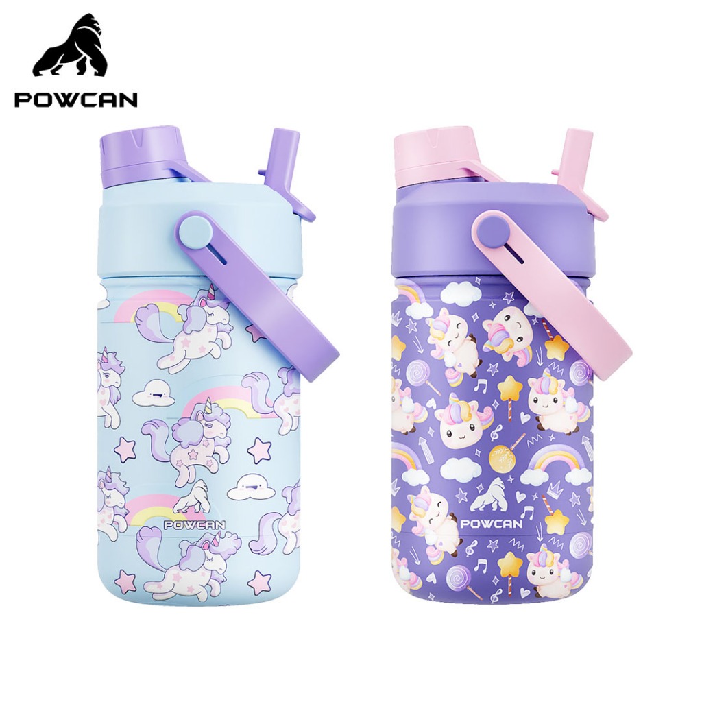 [Star] POWCAN 12oz (340ml),Gelas termos lucu untuk anak-anak, botol minum panas dingin stainless steel 304, dilengkapi dengan dua cara minum: sedotan dan mulut botol langsung,gelas air anti bocor