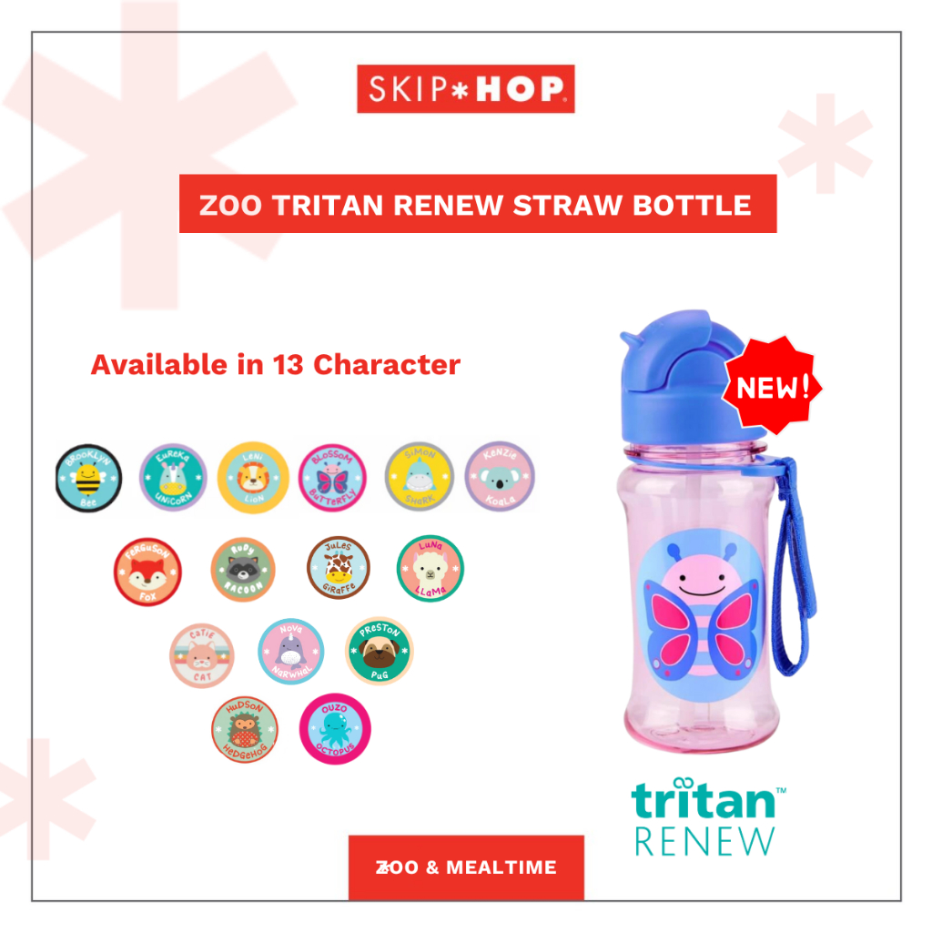 [Star] Skip Hop Zoo Tritan Renew Straw Bottle - Botol Minum Anak dengan Sedotan & Penutup Flip